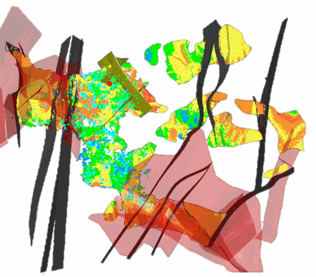 - Construcción del modelo de bloques de calidad del macizo rocoso.